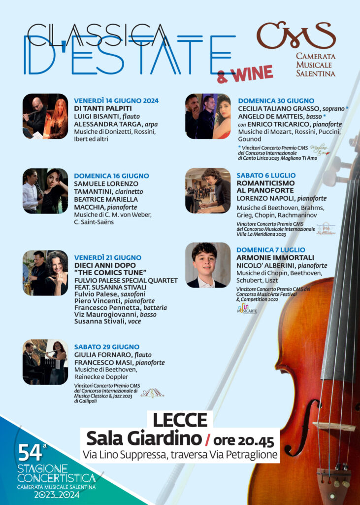 & wine”, la rassegna organizzata dalla Camerata Musicale Salentina nell’ambito della 54^ Stagione